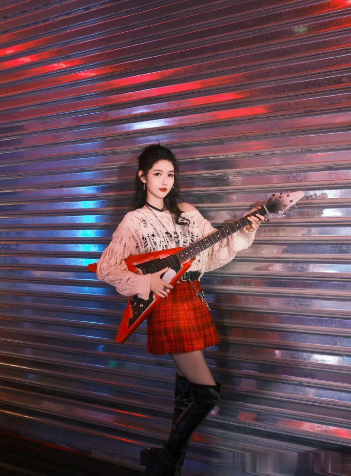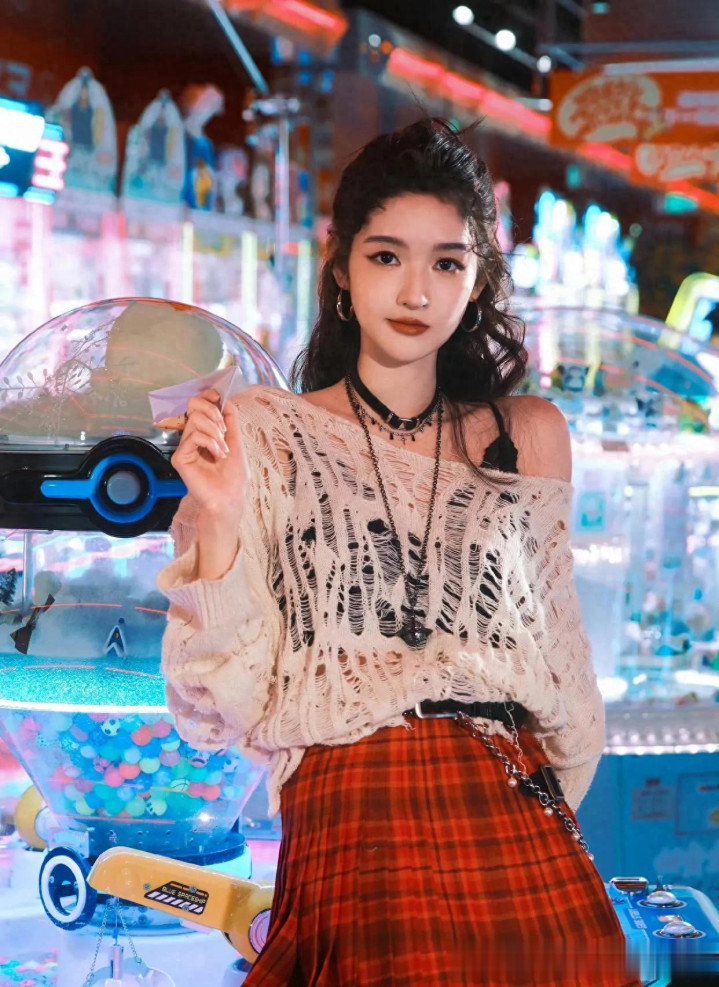 > 王玉雯风格大变! 针织衫+红格短裙+长筒靴, 甜酷少女又时髦!